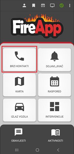 Brzim kontaktima možete pristupiti pritiskom na tipku za brzi kontakt na glavnom izborniku aplikacije: