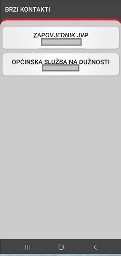Brzi kontakti - utvrđuje i upisuje administrator udruge koji ima pristup on-line administratorskom profilu. Nakon što administrator unese sve tražene brze kontakte i spremi ih, korisnici moraju osvježiti podatke kako bi se uneseni brzi kontakti također prikazali u aplikaciji (3 točke u gornjem desnom kutu i "Osvježi podatke"). Podaci se također automatski osvježavaju tijekom automatskog testiranja aplikacije.