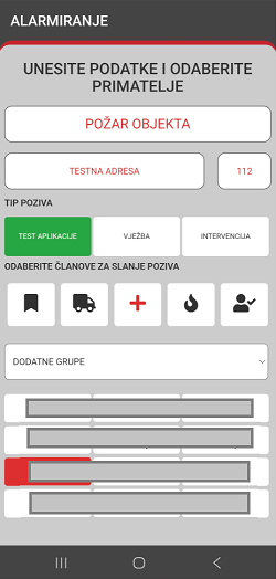 Nakon što smo unijeli sve potrebne podatke, pomičemo se prema dolje do popisa korisnika i pritisnemo gumb ''ALARMIRAJ'':