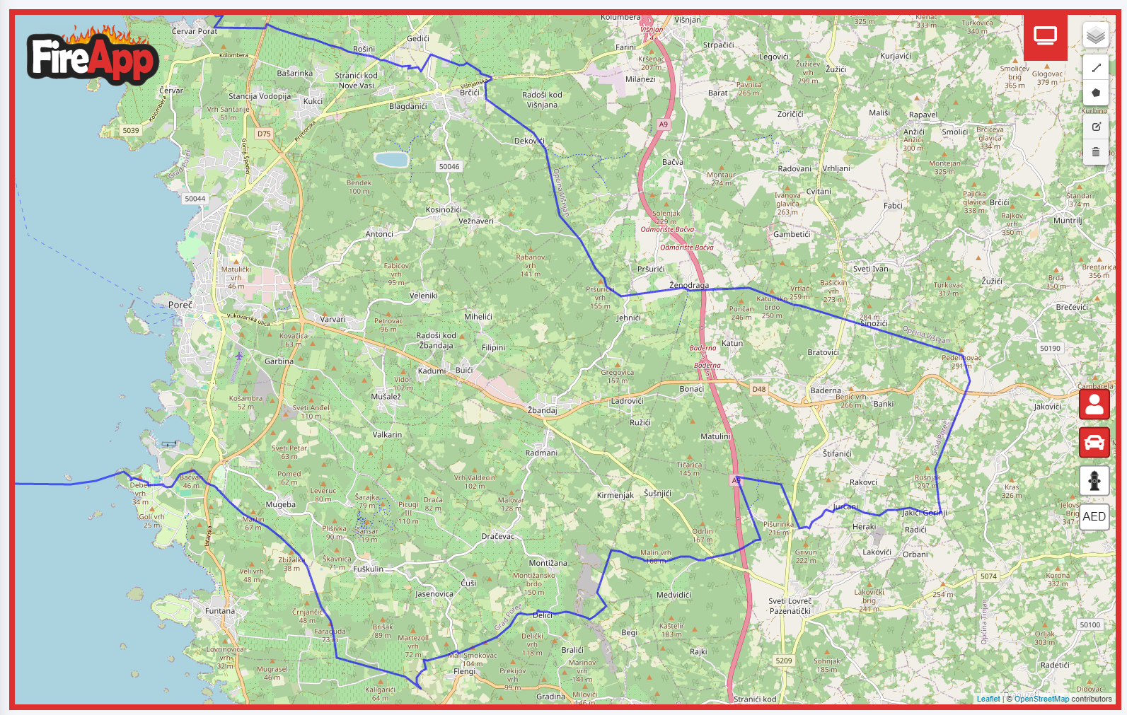 Na desnoj strani nalazi se alatna traka za prikaz raznih postavki. Možemo odabrati što će se prikazivati na karti, možemo odabrati slojeve karte i alate za označavanje na karti.