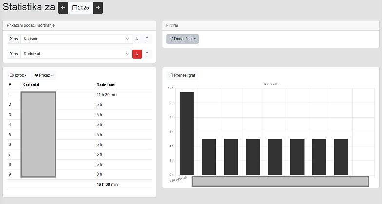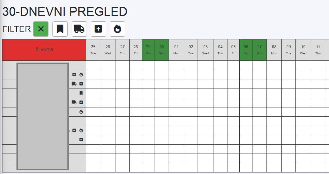 Pregled 24-satnih i 30-dnevnih izostanaka dostupan je samo korisnicima koji su u FireApp sustav unijeli "specijalnost" "Zapovjednik/Poručnik" i administratorima, jer se radi o osobnim podacima.